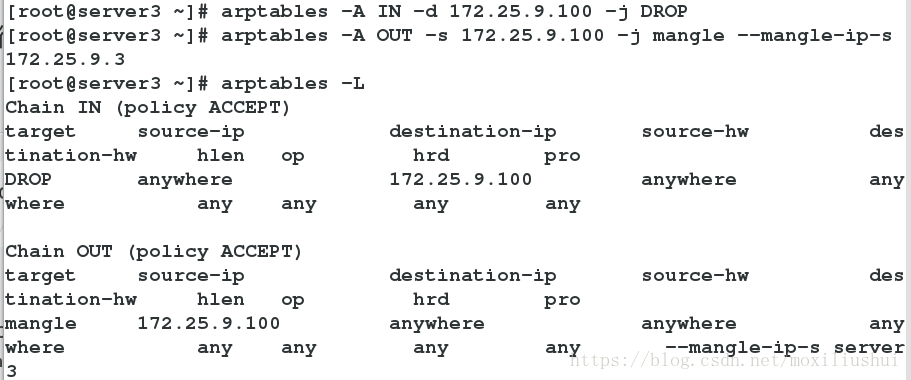arptables -A OUT -s 172.25.9.200 -j mangle --mangle-ip-s 172.25.9.3