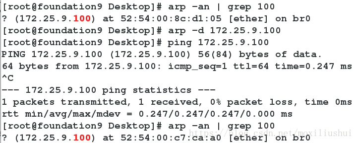 arp -an | grep 100 得到vip的vmac地址,此时vmac地址为server1中eth0网卡的mac地址