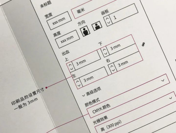 印刷品设计时出血(页边距)一般设置为3mm。印刷品设计时一定要把出血的尺寸考虑进去,因为印刷成品在后期会有2mm-3mm将被切割,以保证作品的完美度。