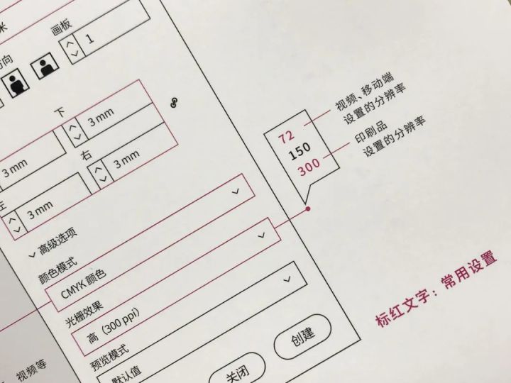 在印刷品设计时分辨率的设置必须达到300像素/英寸,需要注意的是,要先设置尺寸再设置分辨率,否则尺寸小了,分辨率加大了也没有用,所以在设计前需要确认好分辨率以及尺寸,否则设计搞完成后再加大图片会变模糊。