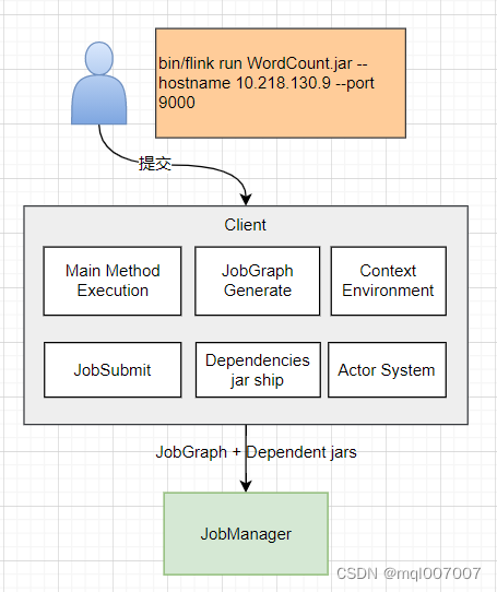 Client是指用于提交Flink应用的客户端,Flink 作业在哪台机器上面提交,那么当前机器称之为Client,Flink集群提供的客户端工具是 Flink 主目录下 bin/flink,使用方式 bin/flink run 详见具体命令操作规范。