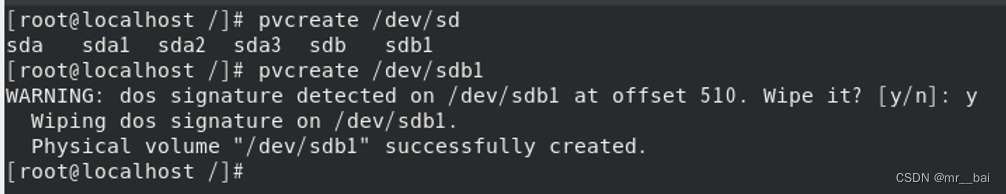 pvcreate /dev/sdb1 #刚才在新建分区时,名称为sdb1