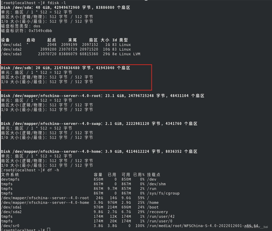 四、通过fdisk -l 或者 lsblk 命令可查看分区新建成功
