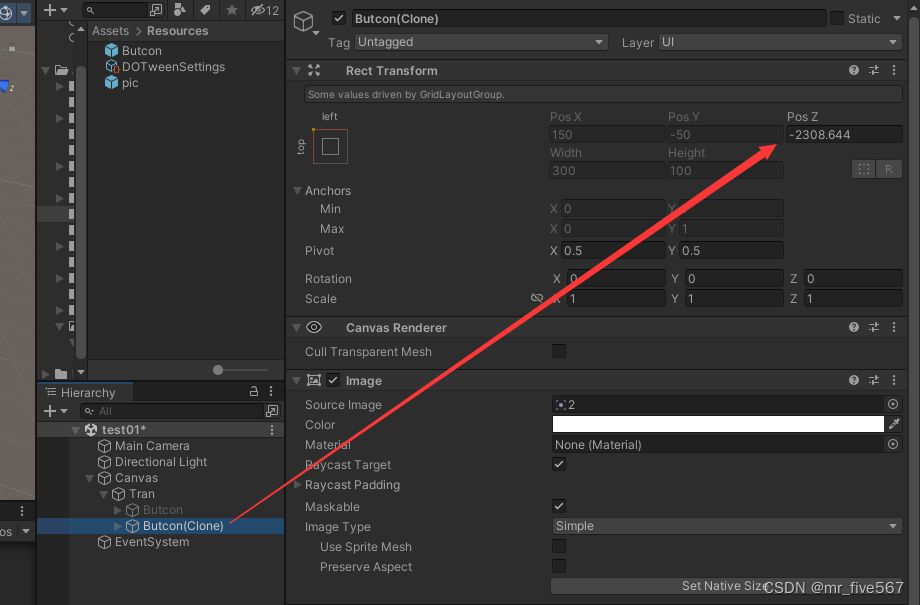 原来复制的UI预制体并没有在摄像头之下。这样一排查就发现即使我用Grid Layout Group钳制了宽高,并且我的预制体的Z坐标是0,但是我通过代码复制出来的Z坐标却变成了-2308.644了。