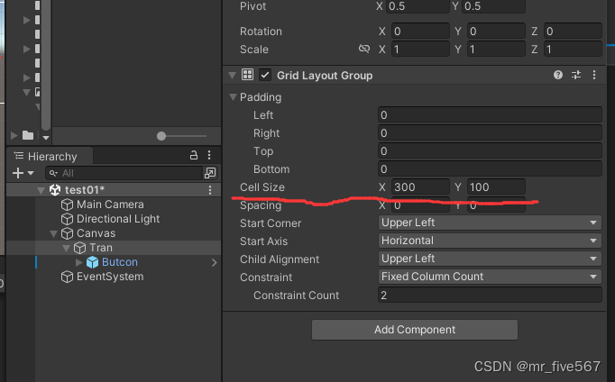还有一点我通过Grid Layout Group钳制了复制的预制体的宽度跟原来一样。如下图,