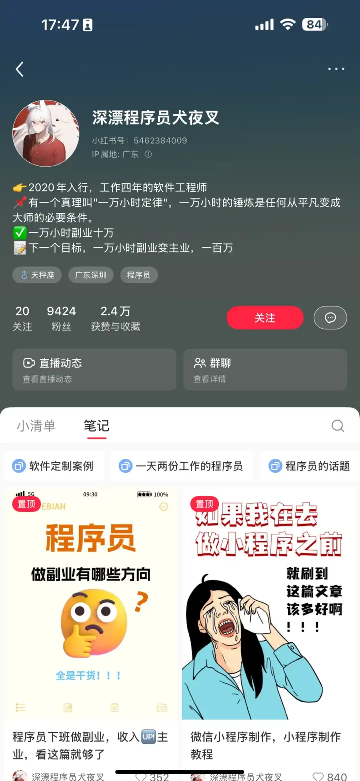 最后,也欢迎大家关注深漂程序员犬夜叉的小红书账号,一起交流、学习。