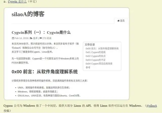 工作后时间紧,没有大学时各种折腾的闲心,干活效率为先,也不去搞双系统、虚拟机了,然后配上了cygwin/msys。那时候cygwin的资料很少,我看英文手册无大碍,凭着冲动和兴趣,把自己对cygwin的理解写成笔记,建了QQ群,讨论和解答一些问题。期间还接了群里一位老板用Cygwin打包程序的活,帮助程序实现从Linux到Windows跨平台。