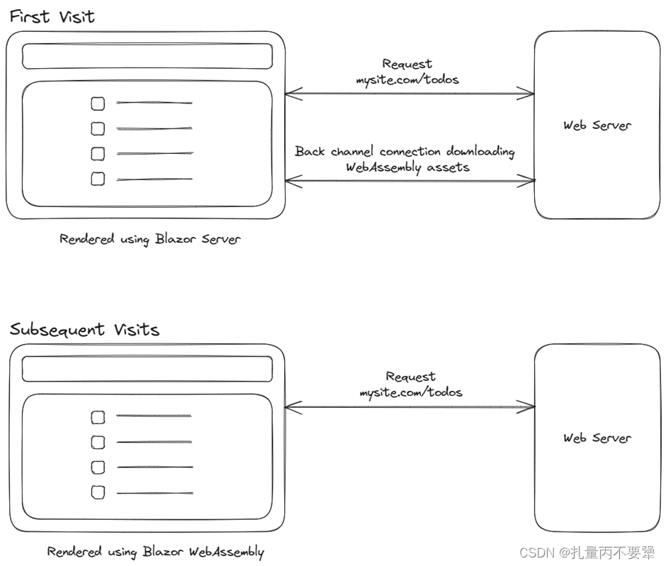我理解的blazor自动模式:组件的初始加载将通过Server进行,使其超快。但在后台,Blazor 会将必要的资源下载到客户端,以便在下次加载时可以使用 WebAssembly 模式完成。这是一个很完美的模式,它解决了一直以来WebAssembly 模式首次加载超级慢的问题。就是说资源没下载完成的时侯,用服务端渲染,加载完成以后用WebAssembly。怎么产,伙伴们,是不是想试试.net8的blazor了?