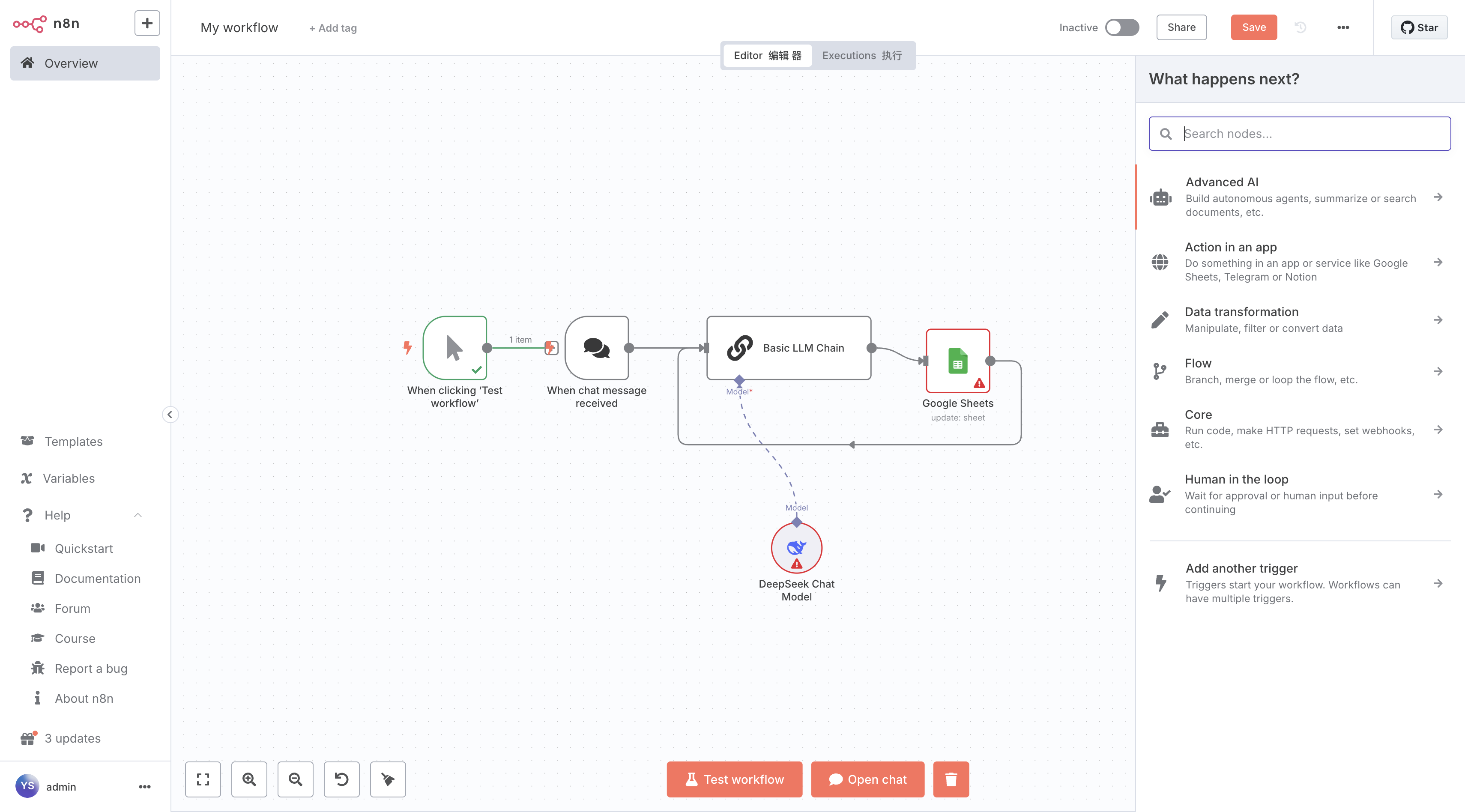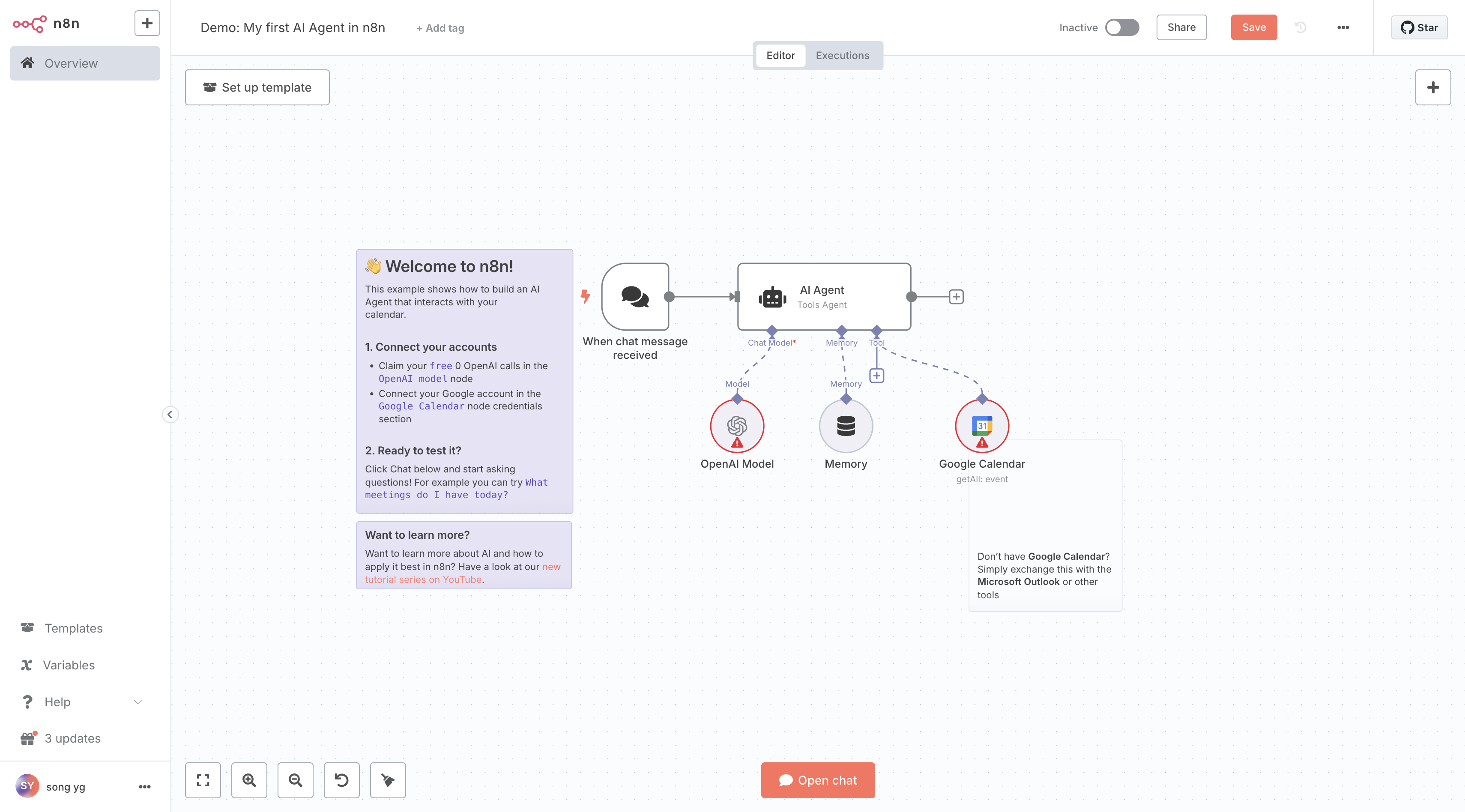 搭建工作流程就像搭积木一样简单。在 n8n 的界面里,你只需从左侧的节点库中拖曳各种功能节点,比如触发器、操作节点、过滤器等,然后用线条连接起来,就能创建出复杂的自动化流程。每个节点的配置都有清晰的提示,即使是技术小白也能快速上手。