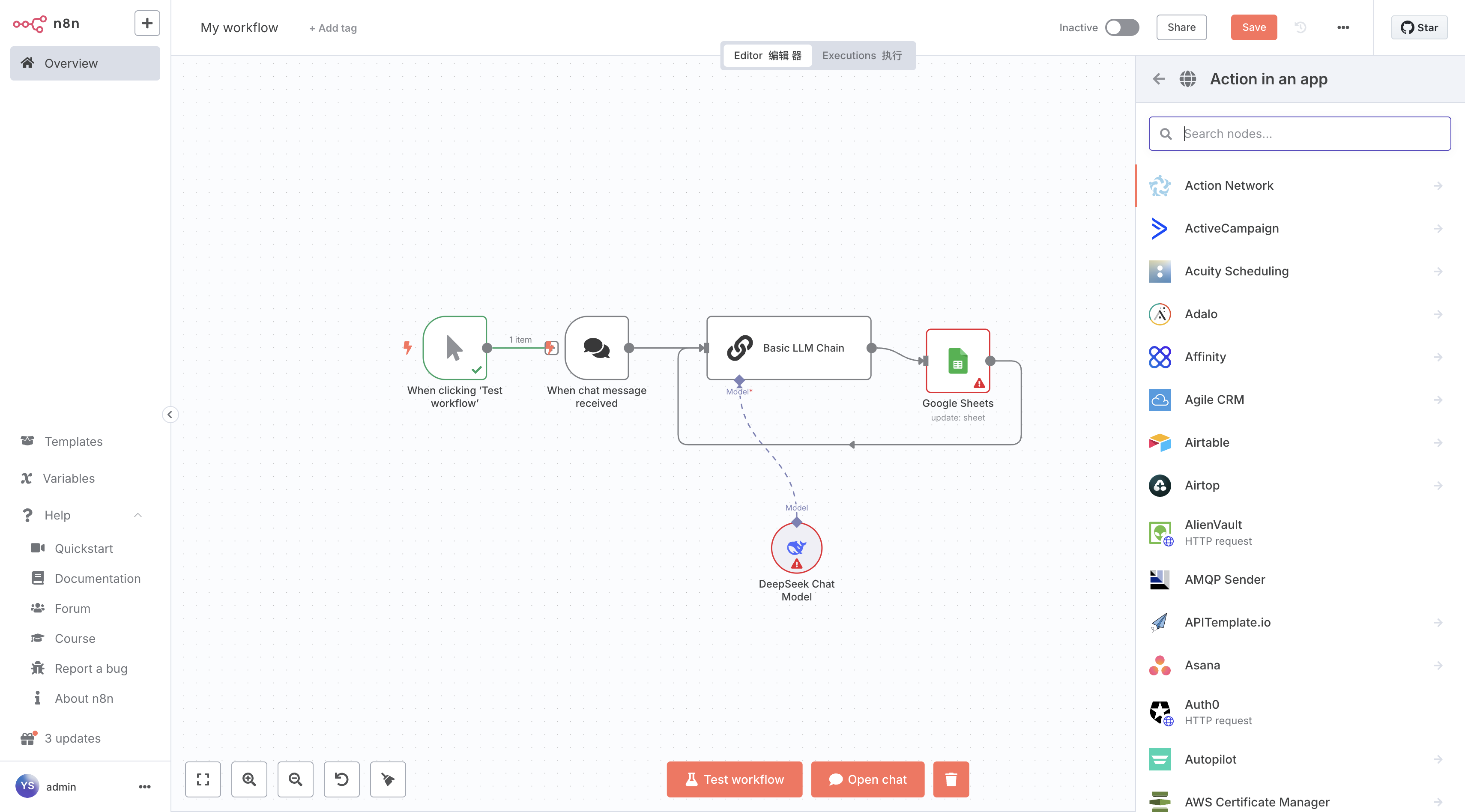 n8n 支持与超多常见的应用程序和服务集成,像大家熟悉的 Slack、Google Sheets、Trello、Salesforce 等,涵盖了办公协作、数据存储、项目管理等多个领域。例如,你可以让它自动把 Google Sheets 里的数据同步到 Trello 的任务卡片上,实现信息的无缝流转,打破工具之间的“数据孤岛”。