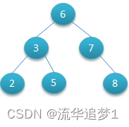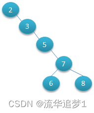 二叉查找树可以任意地构造,同样是2,3,5,6,7,8这六个数字,也可以按照下图的方式来构造: