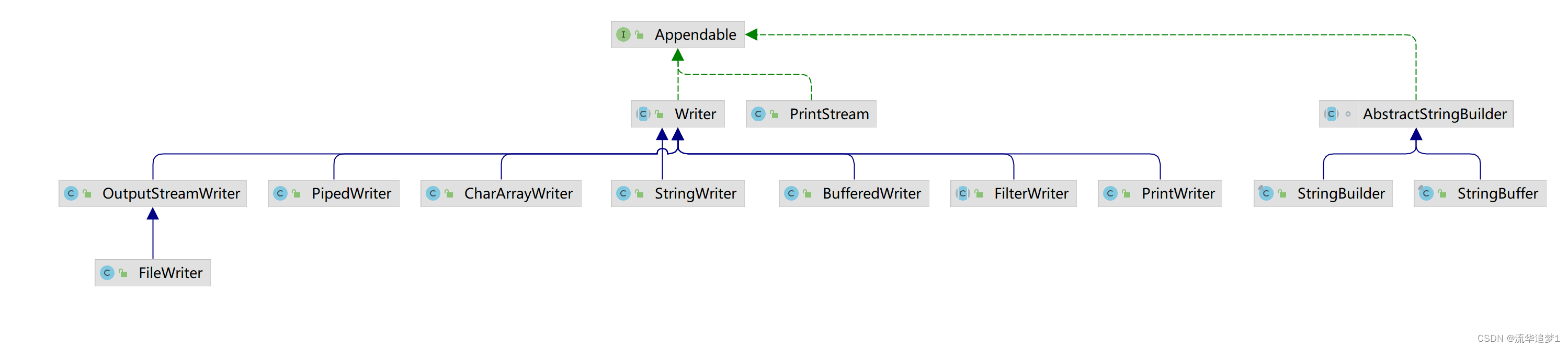 FilterReader 和 FilterWriter 用于读写过滤后的字符流的抽象类。除了简单覆盖父类方法,没有添加额外的方法。
