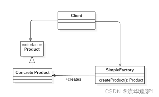 以下的 SimpleFactory 是简单工厂实现,它被所有需要进行实例化的客户类调用。