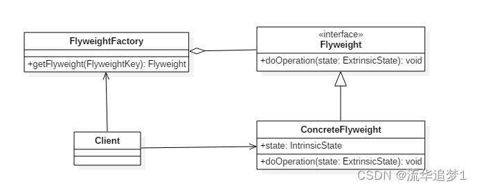 IntrinsicState: 内部状态,享元对象共享内部状态,不会随着环境的改变而改变的可共享部分