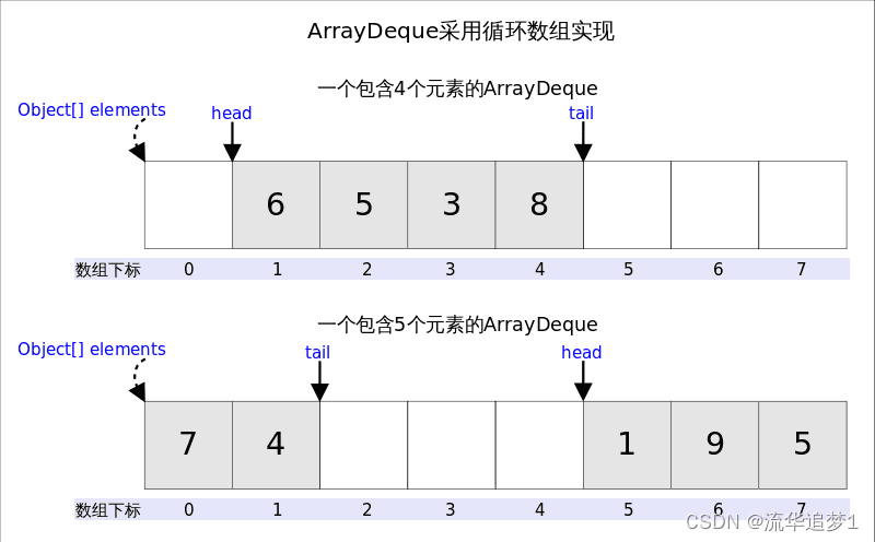 LinkedList 是Deque的两个通用实现,由于官方更推荐使用ArrayDeque用作栈和队列,由于作者已经讲解过 LinkedList,本文将着重讲解ArrayDeque的具体实现。