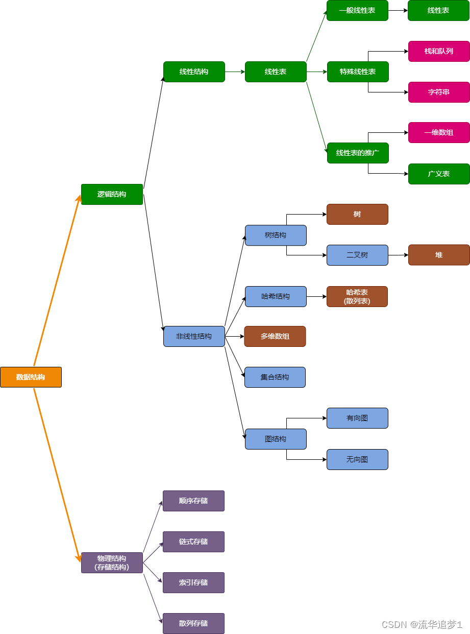 数据结构中的逻辑结构分为线性和非线性两大类,主要有八大种,比如线性数据结构的就有 数组、链表、栈、队列。非线性的数据结构就有 树、堆、散列表、图等等。