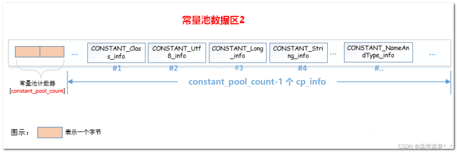常量池计数器:记录的是常量池数据区中的常量池项 cp_info 的数量。