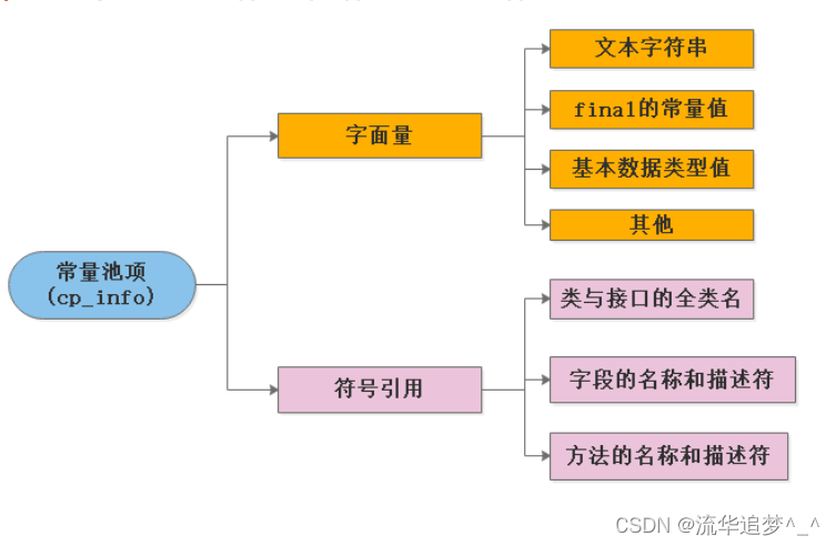在常量池中主要存放字面量和符号引用。字面量比较接近Java语言层面的常量概念,比如文本字符串、声明为final的常量值等。符号引用则主要包括三类常量:
