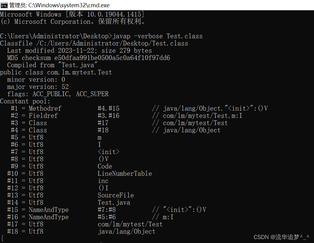 到这常量池已经全部解析完成: 可以使用 javap -verbose 命令输出常量表,对常量表进行验证:
