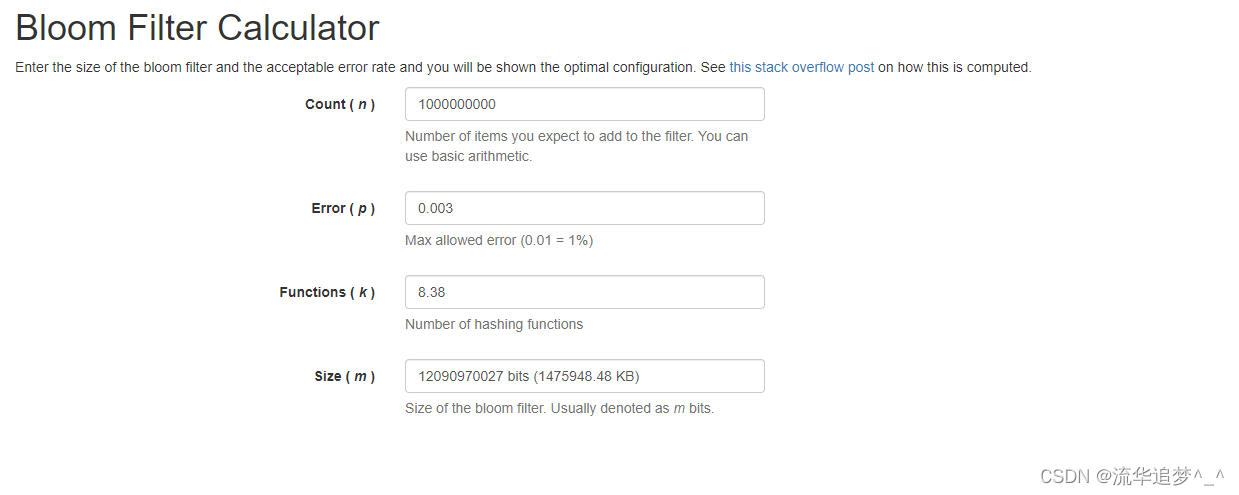 如下地址是一个免费的在线布隆过滤器在线计算的网址: