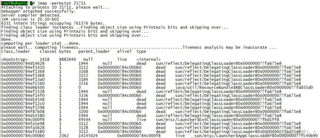 root@ubuntu:/# jmap -dump:format=b,file=/tmp/dump.dat 21711