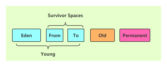 要明白上面各列的意义,先看 JVM 堆内存布局(具体可参见《JVM原理剖析》):