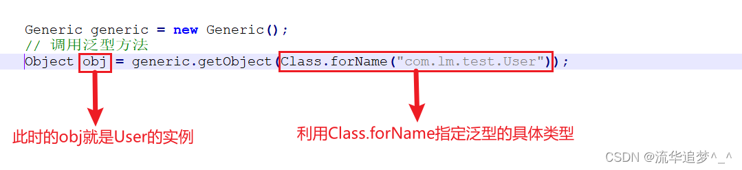 i = new InfoImpl<>("流华追梦"); // 通过子类实例化对象