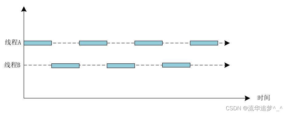 并发指的是在同一时刻,只有一个线程能够获取到 CPU 执行任务,而多个线程被快速的轮换执行,这就使得在宏观上具有多个线程同时执行的效果,并发不是真正的同时执行,并发可以使用下图表示: