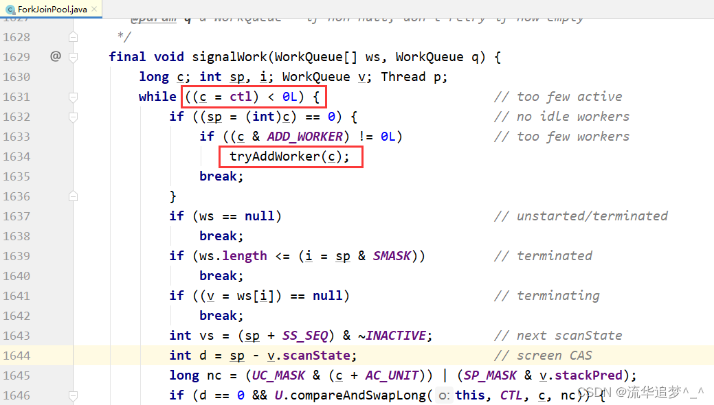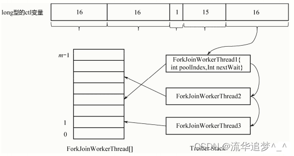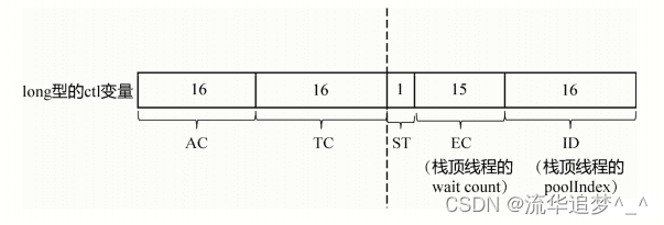类似于 ThreadPoolExecutor,在 ForkJoinPool 中也有一个 ctl 变量负责表达 ForkJoinPool 的整个生命周期和相关的各种状态。不过 ctl 变量更加复杂,是一个 long 型变量。