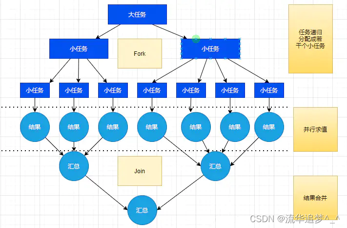- ForkJoinTask 这是 ForkJoinPool 支持运行的 task 抽象类,我们一般使用其子类如RecursiveTask 或者 RecursiveAction。这个在前文有介绍。这个类提供了任务拆分和结果合并的方法。