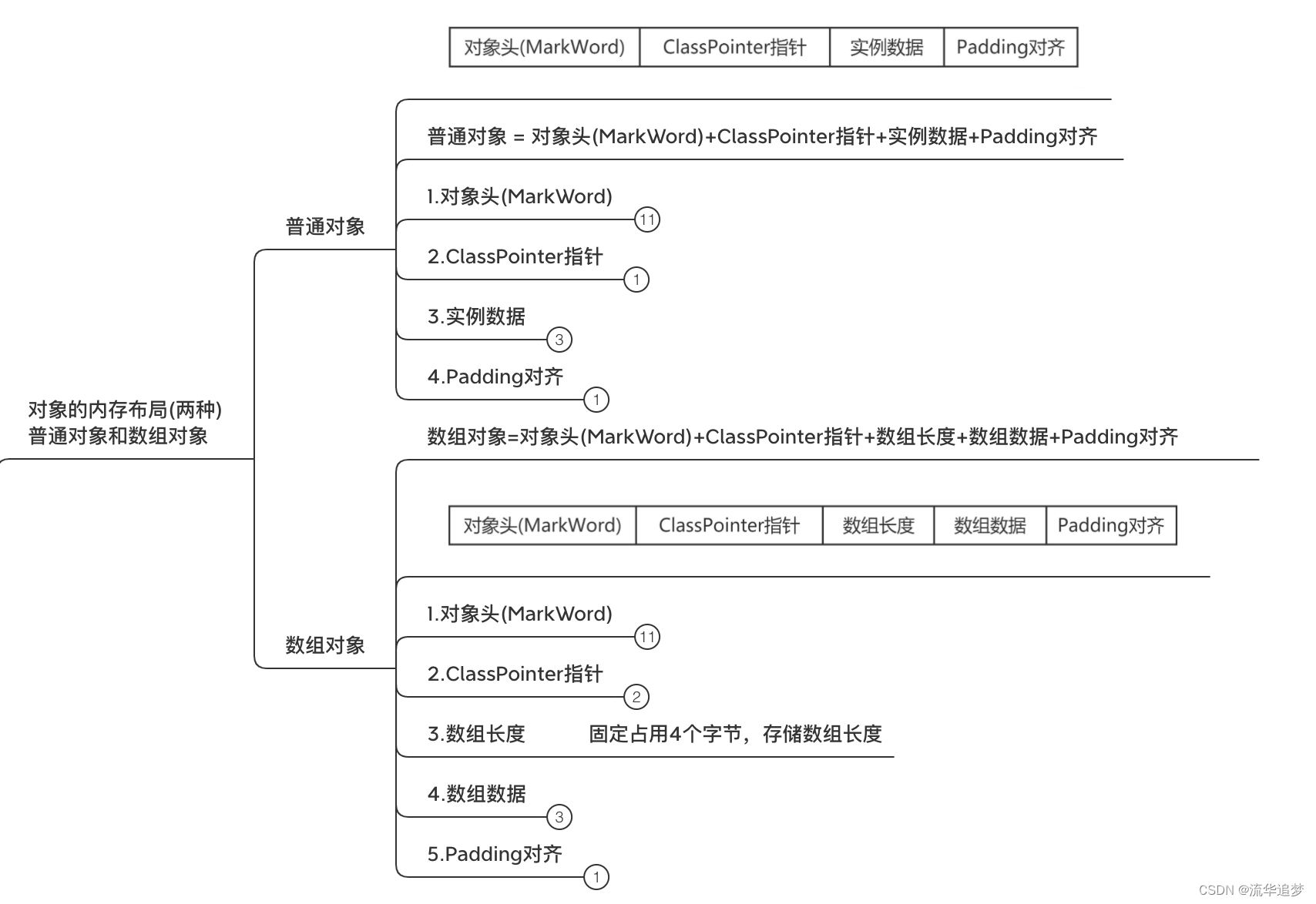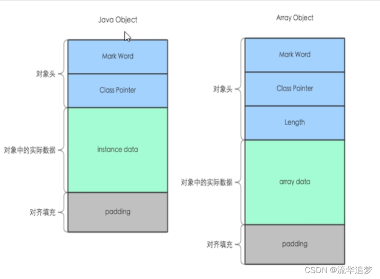 Java 对象的内存布局分为两种,普通对象和数组对象。