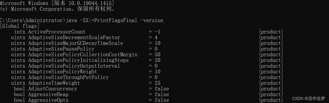 java -XX:+PrintFlagsFinal -version