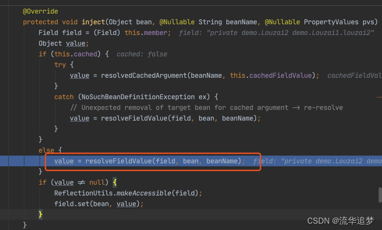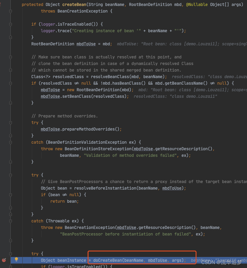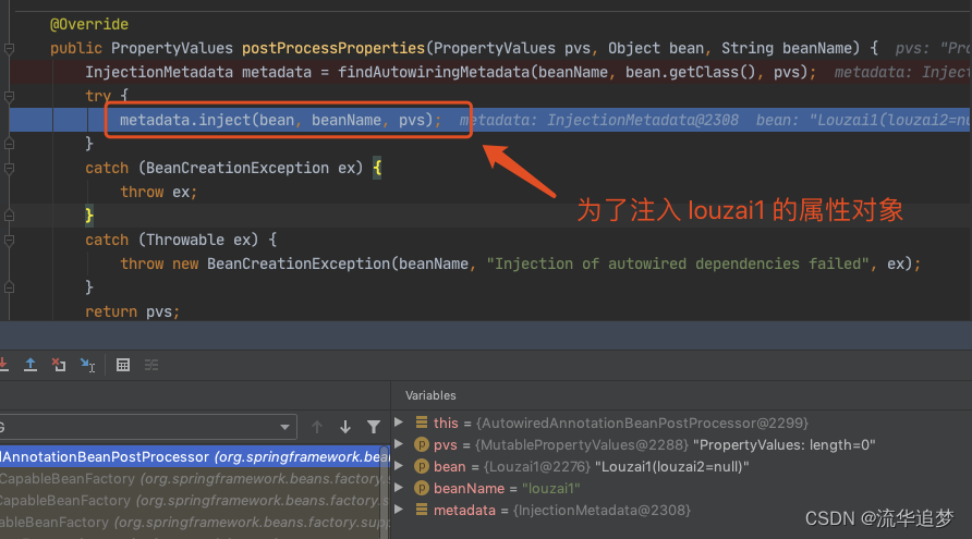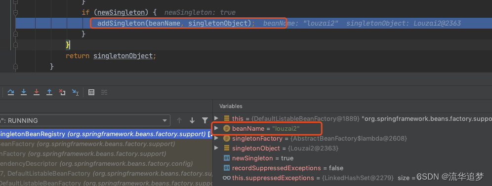 这里需要多跑几次,把前面的 beanName 跳过去,只看 louzai1。