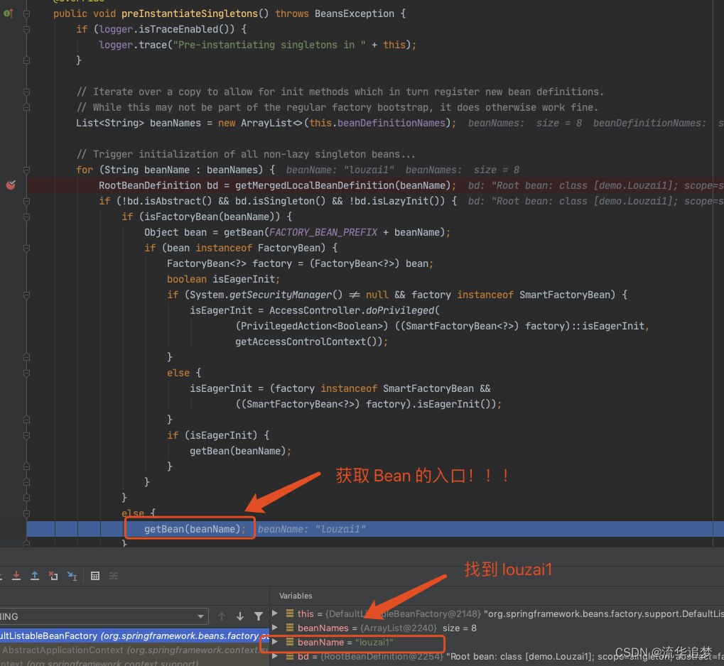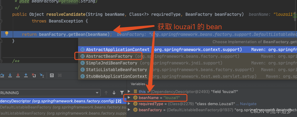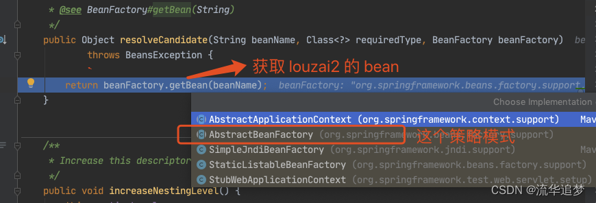 需要获取 louzai2 的 Bean,是 AbstractBeanFactory 的方法。