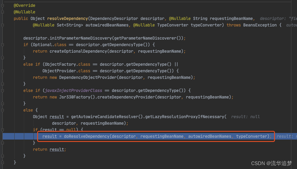前面的流程全部省略,直接到 doResolveDependency()。