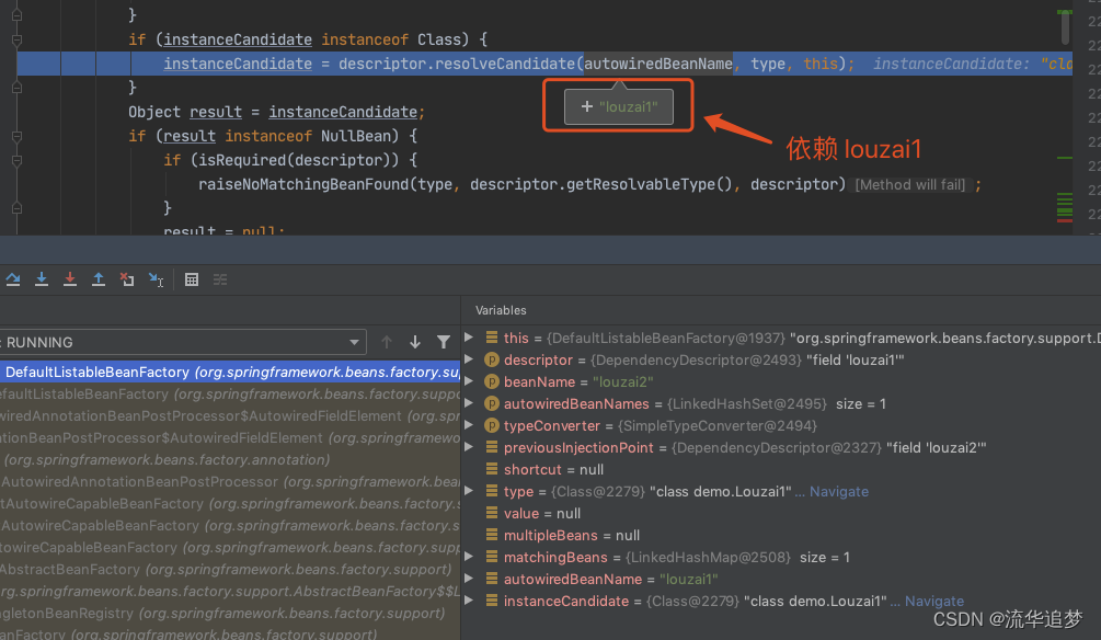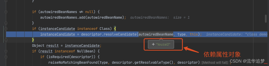 进入 doResolveDependency(),找到 louzai1 依赖的对象名 louzai2。