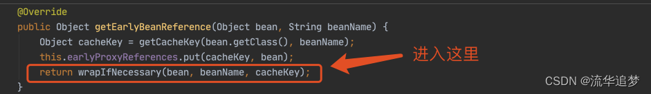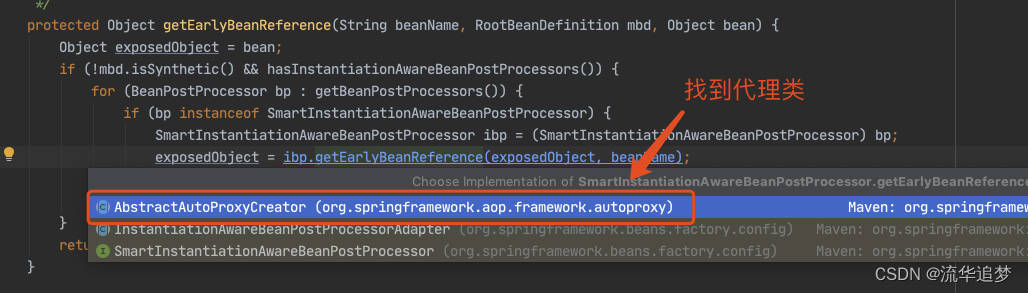 下面我们主要看这个对象工厂是如何得到的,进入 getEarlyBeanReference() 方法。