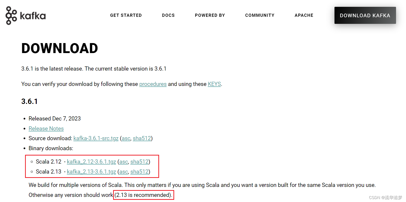登录 Apache kafka 官方下载,https://kafka.apache.org/downloads.html