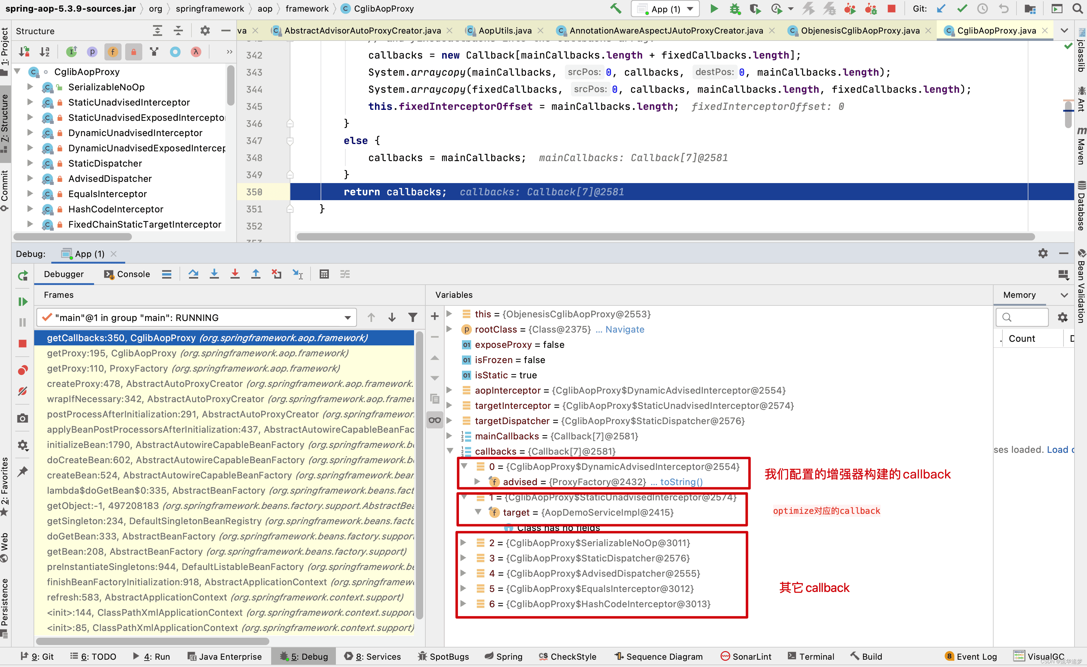 Callback aopInterceptor = new DynamicAdvisedInterceptor(this.advised);