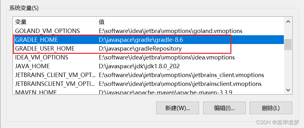 - GRADLE_USER_HOME:gradle 目录下的 repository 目录(解压后需新建);