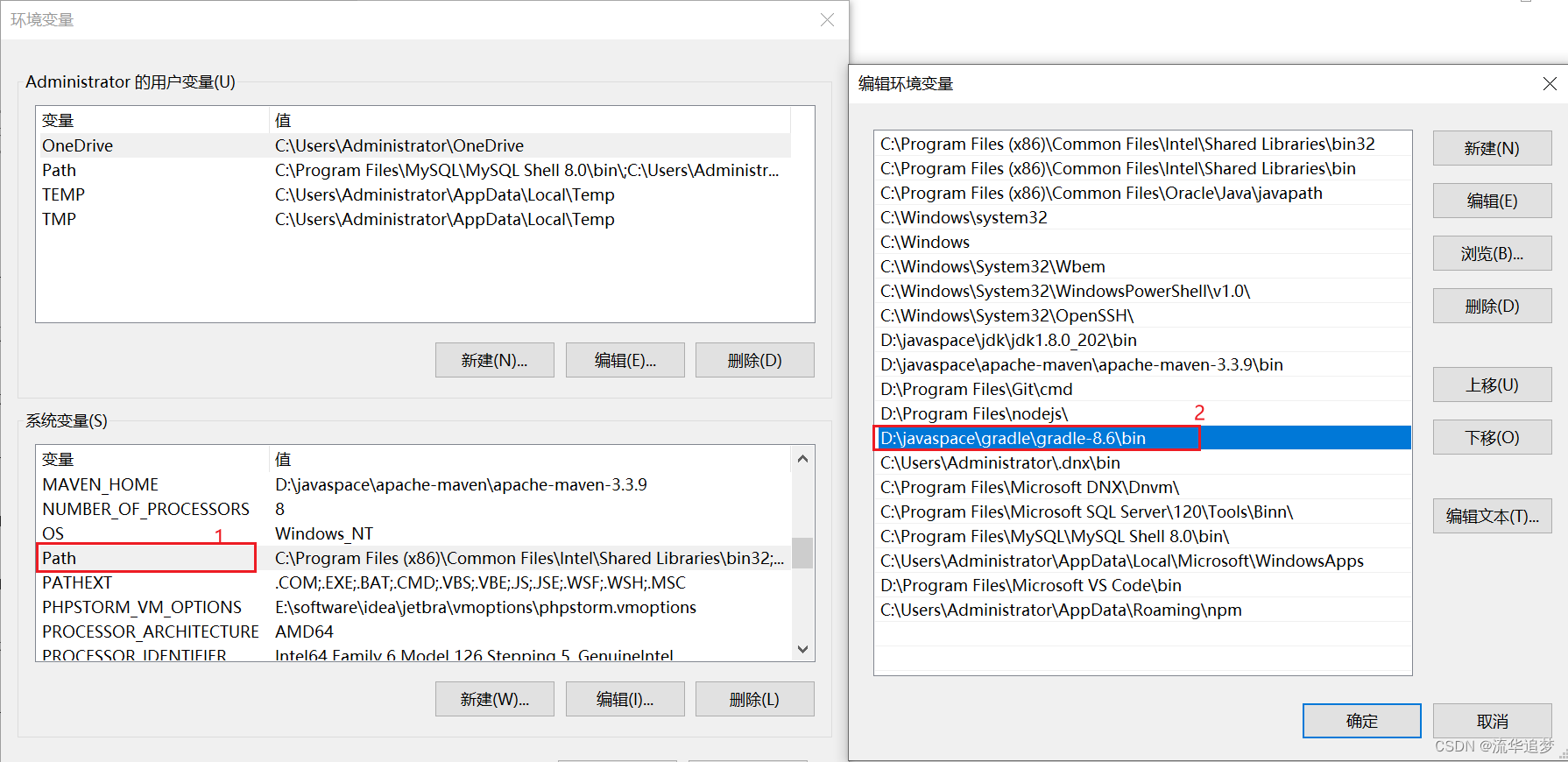 - 在系统的 Path 中配置 %GRADLE_HOME%\bin。