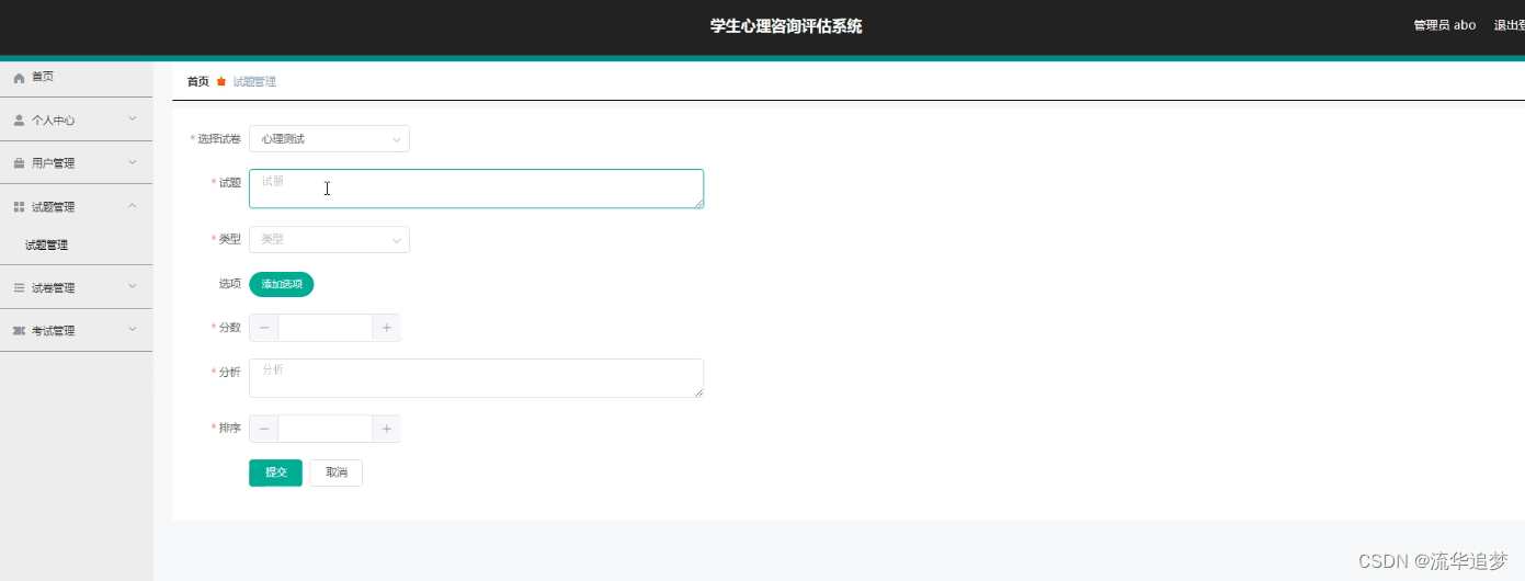 这次开发的学生心理咨询评估系统有管理员和用户。管理员可以管理个人中心,用户管理,试题管理,试卷管理,考试管理等。用户参加考试。。经过前面自己查阅的网络知识,加上自己在学校课堂上学习的知识,决定开发系统选择B/S模式这种高效率的模式完成系统功能开发。这种模式让操作员基于浏览器的方式进行网站访问,采用的主流的Java语言这种面向对象的语言进行学生心理咨询评估系统程序的开发,后台采用Spring Boot框架,在数据库的选择上面,选择功能强大的MySQL数据库进行数据的存放操作。