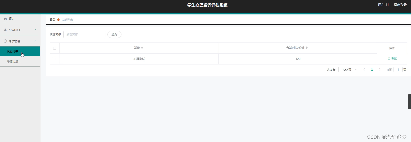 用户登录后可以在试卷列表找到试卷参考考试。下图就是试卷列表管理页面: