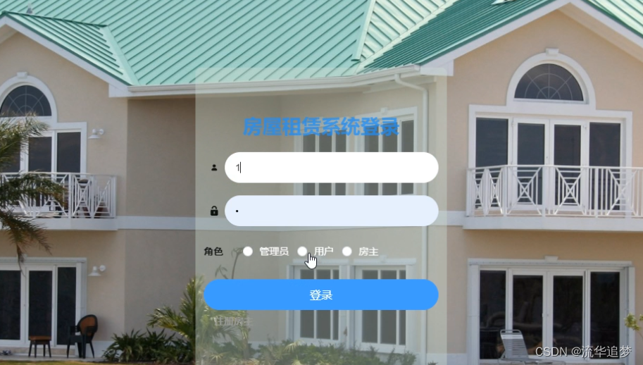 房主通过填写用户名、密码、选择权限进行登录,进入后台系统,如图所示: