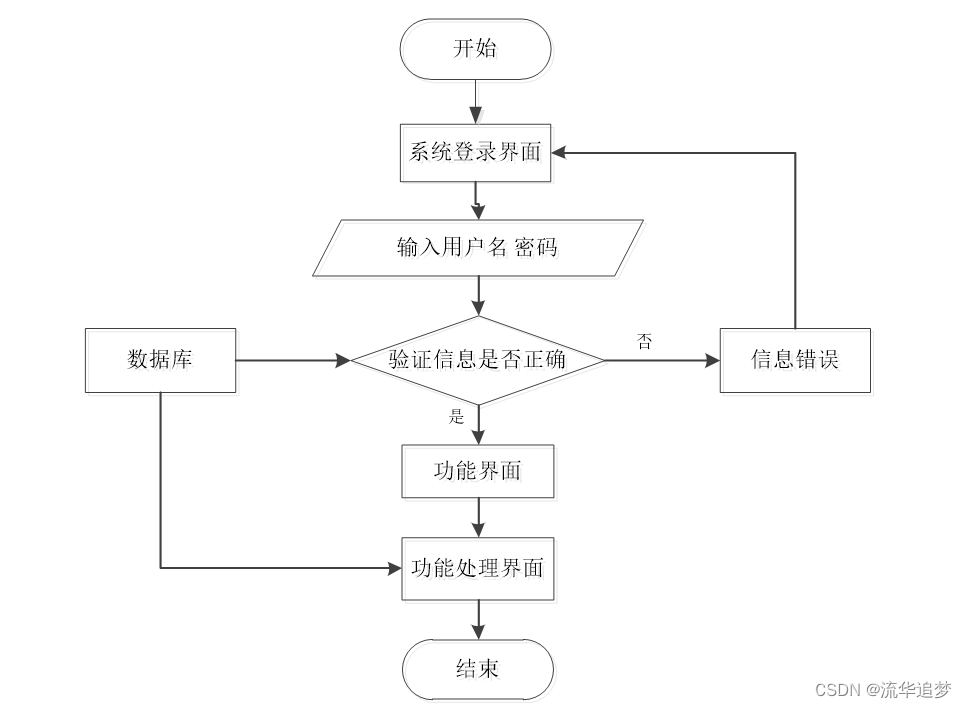 程序上交给用户进行使用时,需要提供程序的操作流程图,这样便于用户容易理解程序的具体工作步骤,现如今程序的操作流程都有一个大致的标准,即先通过登录页面提交登录数据,通过程序验证正确之后,用户才能在程序功能操作区页面操作对应的功能。