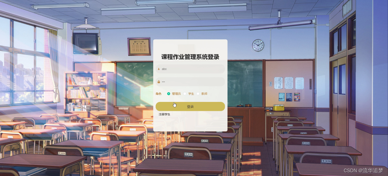 管理员登录,通过填写注册时输入的用户名、密码、角色进行登录,如图所示:
