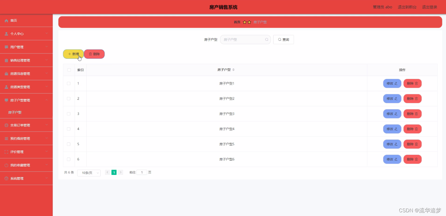 房子户型管理:通过列表可以获取房子户型等信息,进行修改或删除操作,如图所示: