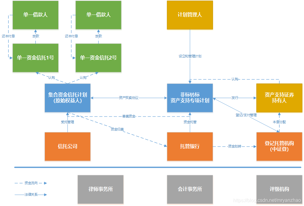 - 律师事务所:对底层借款合同、信托计划相关协议、专项计划相关协议进行审阅,提供法律意见书。