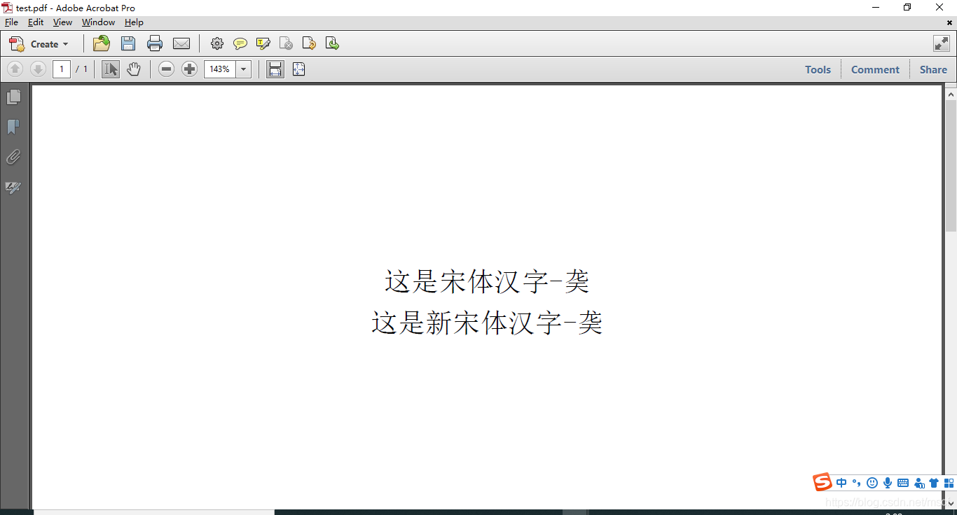 这里使用实体字符直接把字形中的Unicode码塞进去测试,避免了因当前系统的输入法、环境字符编码、自造字形注册等差异造成的误会和困扰,XML实体字符的表示方法为Ampersand加Sharp再加进制数最后分号结束,输出的PDF文档如下体所示。