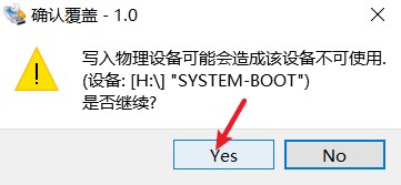 3.烧录系统:打开Win32软件,左侧选择镜像位置,右侧选择烧录进去的设备,YES确定后等待写入成功,点击OK确定